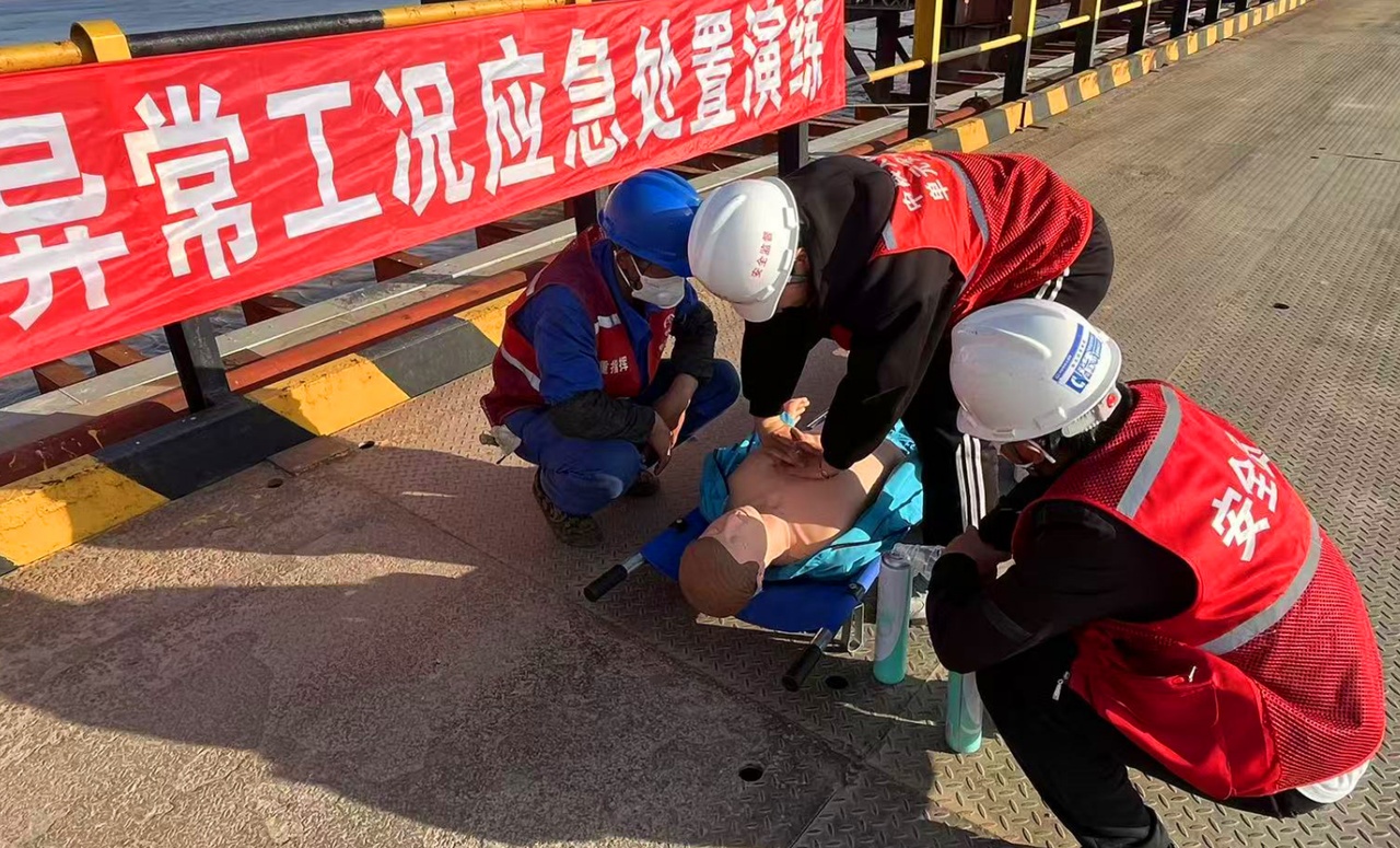 随着大桥主塔内爬梯安装和斜拉索拉设施工,塔内作业频次增加,塔内作业因密闭环境易出现通风不畅、缺氧窒息风险,对现场生产安全、员工生命安全构成严峻挑战。演练场景模拟了斜拉索作业人员在3号主塔墩内进行斜拉索张拉作业,因塔内通风不畅,作业人员缺氧窒息,项目部立即启动应急救援预案。顿时,综合指挥组、抢险救援组、后勤保障组、配合调查组、安全警戒组、医疗救护组人员迅速到达事发地点,按照分工要求开展急救工作。演练现场各小组严肃紧张,密切配合,动作迅速,在较短时间内顺利完成救援演练工作,并达到了预期目的。