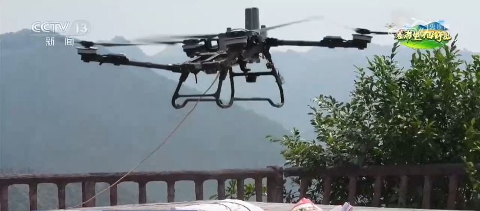 在望谟县油迈瑶族乡纳王村芒果种植基地,大型植保无人机正在高空运送肥料。这个芒果园有一部分在江心岛上,以往管护物资需跨江、靠人力肩挑背扛,效率低且易受天气、水路条件制约延误农时。如今,无人机不受江面、地形阻隔,无需车辆配套,3分钟就能将物资精准运送到位,彻底破解山区跨江管护运输的难题。